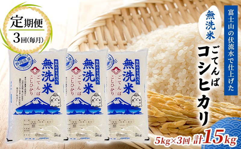 《定期便3回》富士山の伏流水で仕上げた、無洗米ごてんばコシヒカリ5kg 毎月3ヵ月【お米・無洗米・こしひかり・5kg・定期便・3回】[№5812-0460]