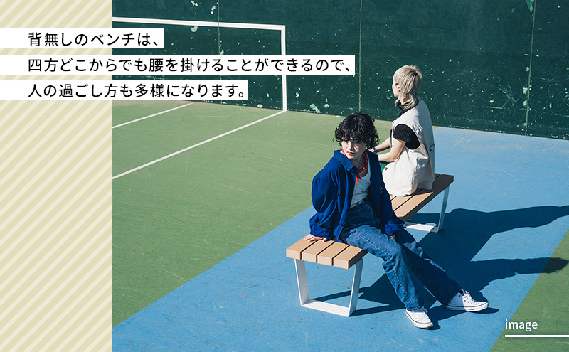 座面の素材には、木粉と樹脂を組み合わせた耐久性の高い再生木材「プラスッド」を使用しています。