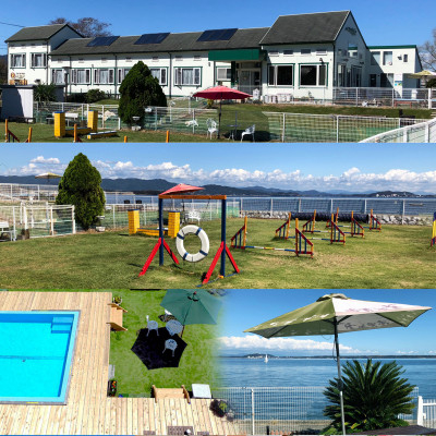 お帰りの際にワンちゃんとの記念撮影サービスあり。(朝9時~雨天、強風中止)