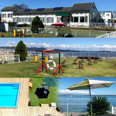 お帰りの際にワンちゃんとの記念撮影サービスあり。(朝9時~雨天、強風中止)