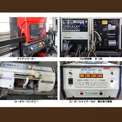 機材は、アイアン、アルミ、ステンレス、チタンなどの素材に対応でき、木材の簡単な加工(切断、簡易塗装、組立など)も可能です。