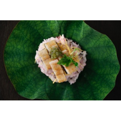 湖西市内で養殖された浜名湖うなぎを、熟練の調理師がさばき、白焼きにし、温かいちらし寿司の上に載せて仕上げた、温(ぬく)寿司(別名:蒸し寿司)。一般的には、臭みの少ない穴子が使用されることがほとんどですが、彩和はうなぎを使うオリジナル仕様で仕上げました。もちろん、臭みやクセもなく、川魚の上品な旨味を感じられます。酢飯には本醸造酢と胡瓜や茄子などの夏野菜を漬け込んだしば漬けの赤紫蘇が加わり、その香りのよさが魅力です。