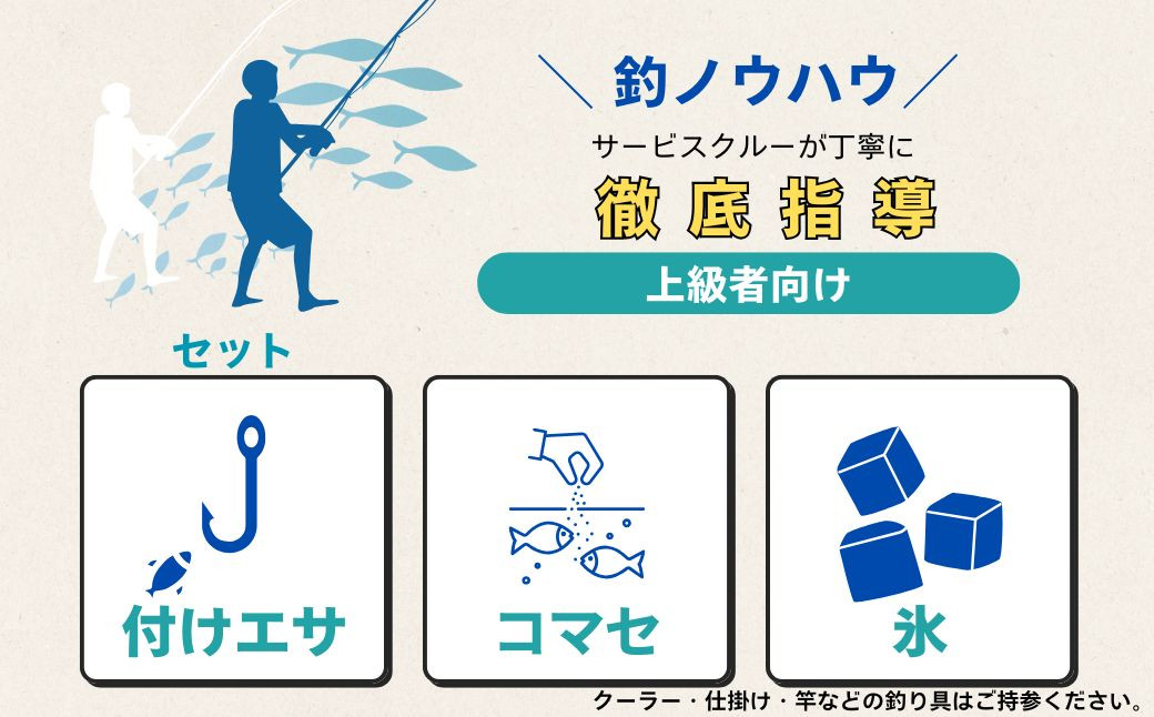 サービスクルーが乗船し、釣りのノウハウを徹底指導いたします。