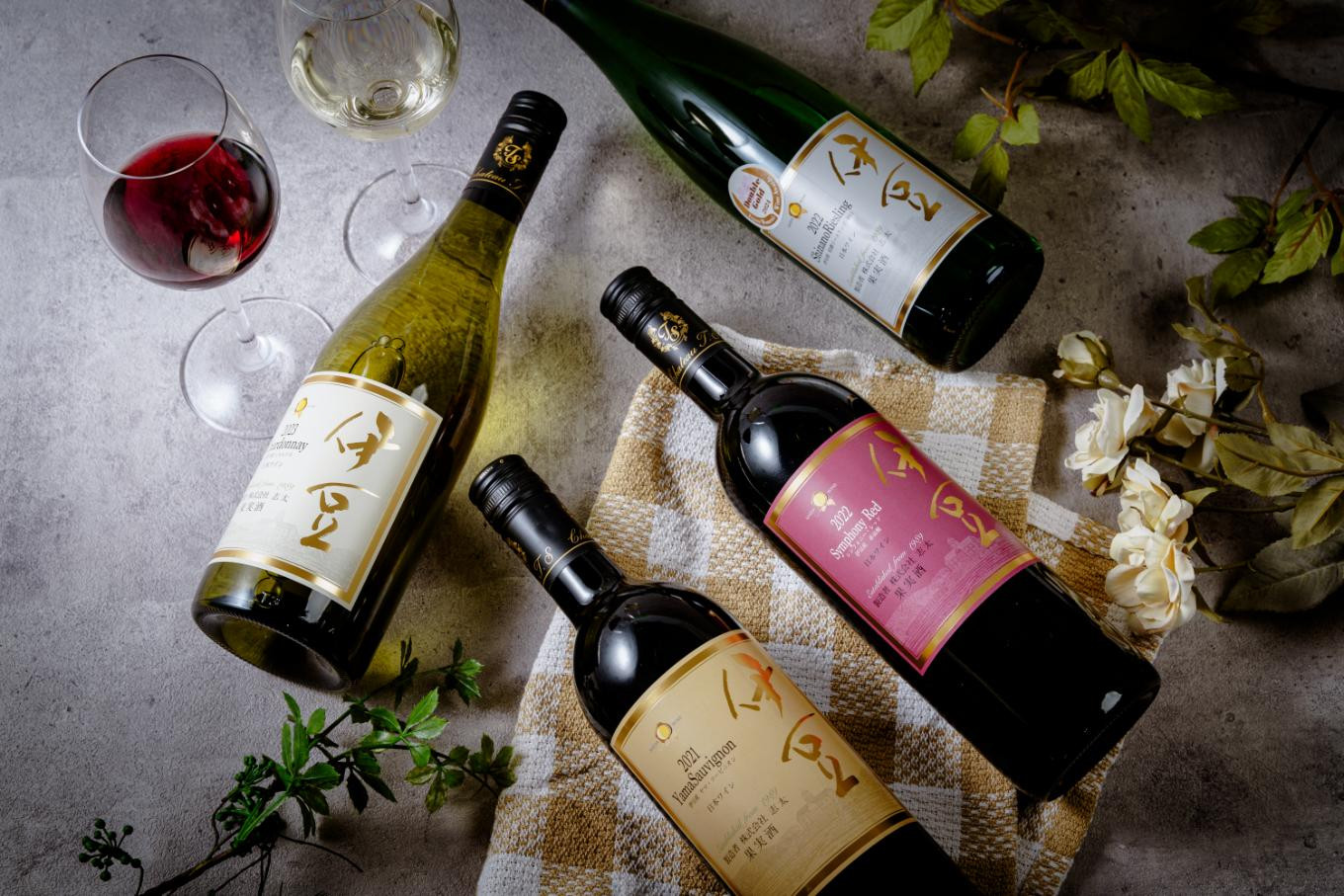 中伊豆ワイナリー自社農場のぶどうを使って醸造した赤白ワインです。伊豆ワインの中でも特に人気のワインを合わせてお送りします。