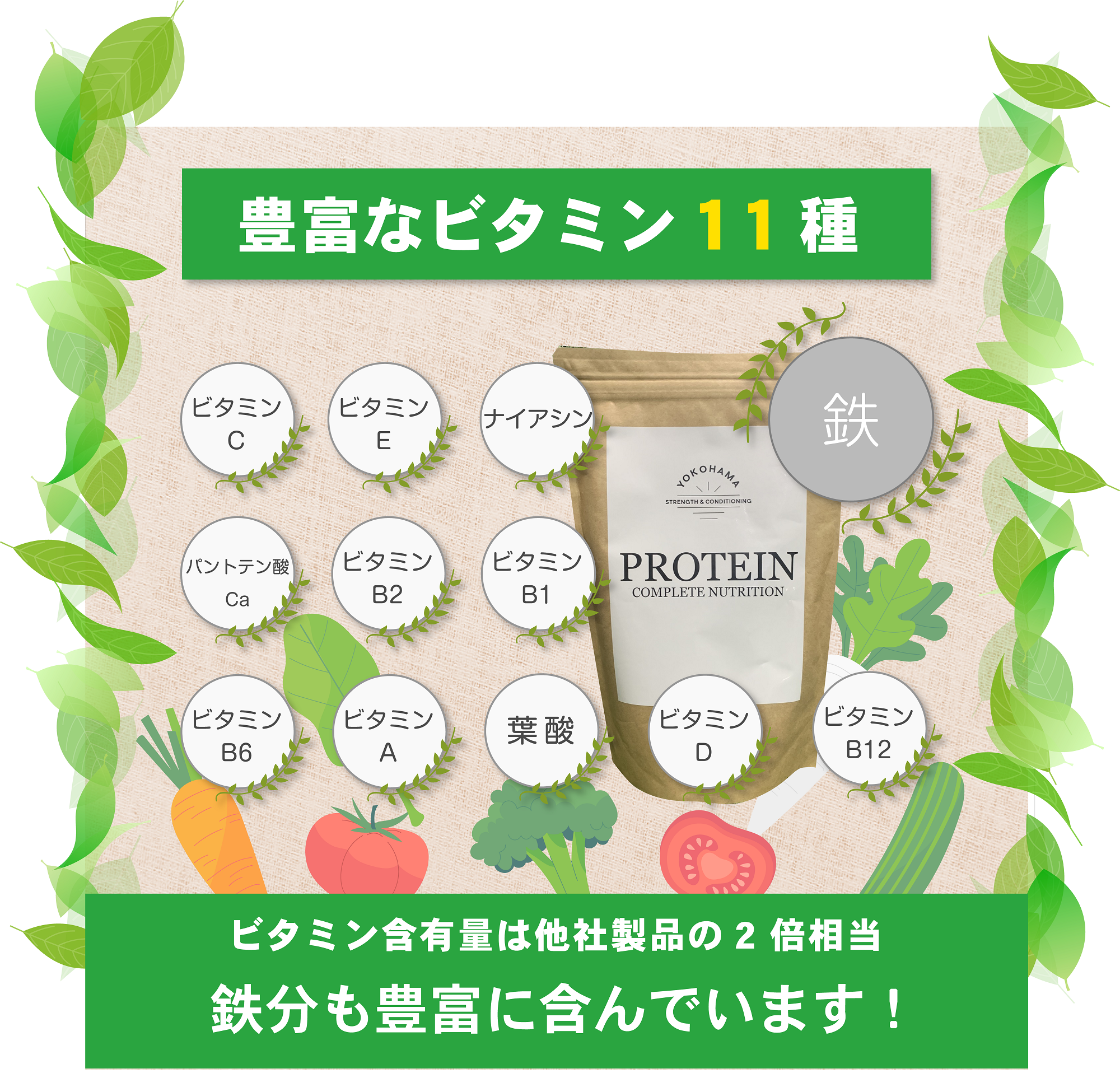 人工甘味料は不使用、必要なたんぱく質を摂取しながらも、1日に必要なビタミン・ミネラル・鉄分をバランスよく含んでいます。