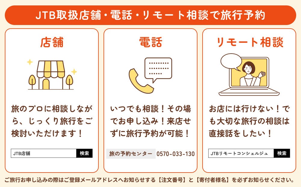 ・店舗、お電話、JTBホームページ(HP)での旅行予約時にご利用ください。