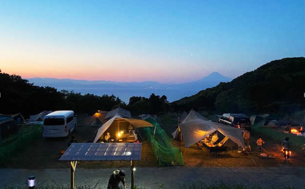 富士山と海が見える絶景のロケーション!静岡県、西伊豆の土肥のキャンプ場 【伊豆キャンファーム】オートサイト利用補助券6,000円分
