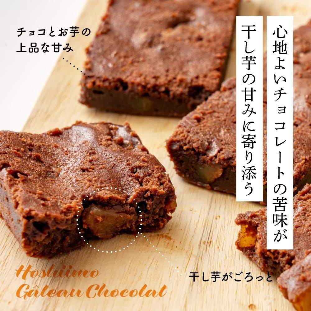 紅金波の角切りほしいもをしのばせた「国産米粉」を使ったグルテンフリーの、お芋のガトーショコラ。