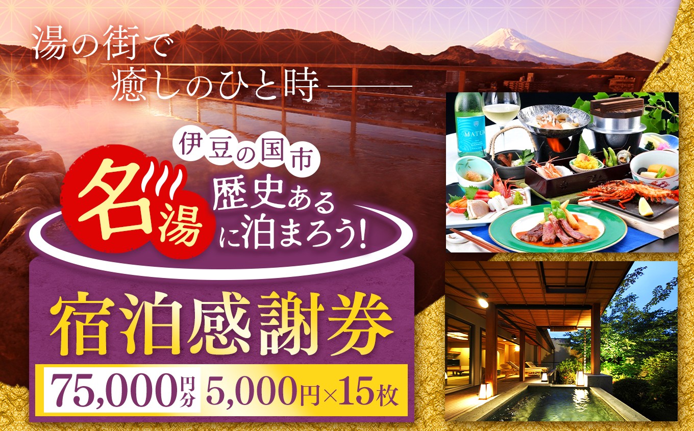 【75,000円分】( 5,000円 × 15枚 )伊豆の国市宿泊感謝券