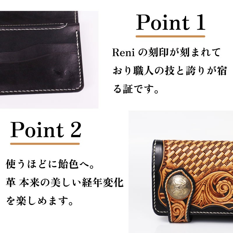 手仕事が生む、永く寄り添う相棒。 【黒タイプ】ロングウォレット 財布 革 長財布 本革 かわ 長財布 機能性 カード 入れ 札入れ 小銭 入れ あり 選べる2色 革製品 かぶせ おしゃれ オシャレ ギフト お祝い レザー コンパクト サイフ レディース ハンドメイド 手作り Reni さいふ 記念日 職人 重量感 ファッション 紳士 メンズ 個性的 小物 高級感 上品 贈り物 スマート 静岡県 牧之原市