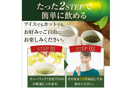 ティーパック1包を150mlの熱湯に入れ1分間抽出してお飲みください。