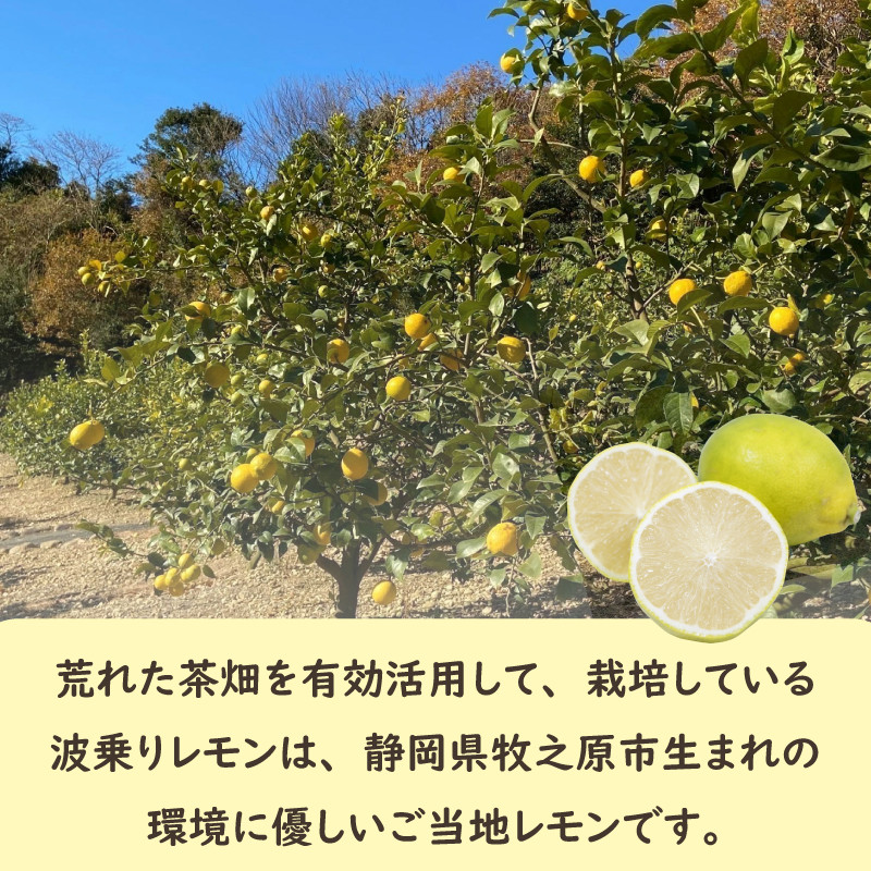 荒れた茶畑を有効活用して栽培している「波乗りレモン」は、静岡県・牧之原生まれの環境にやさしいご当地レモンです。