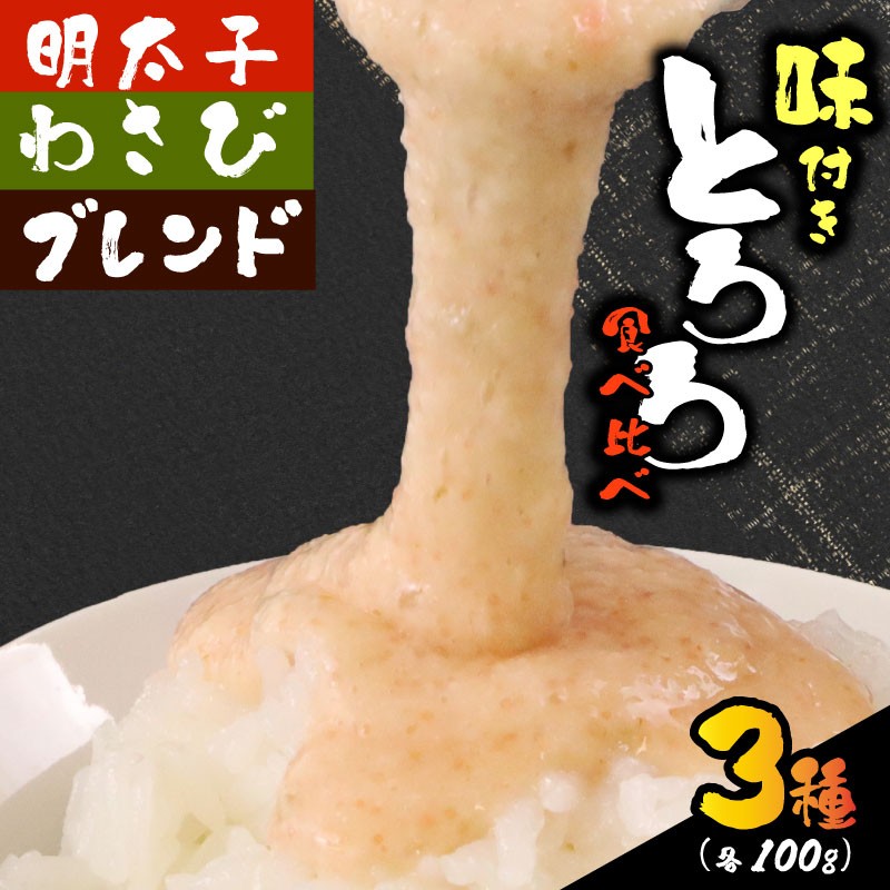| 容量 | とろろ3種セット 100g × 3種 × 2個 計6個 ・味付けとろろ(100g) × 2個 ・明太子とろろ(100g) × 2個 ・わさびとろろ(100g) × 2個 |