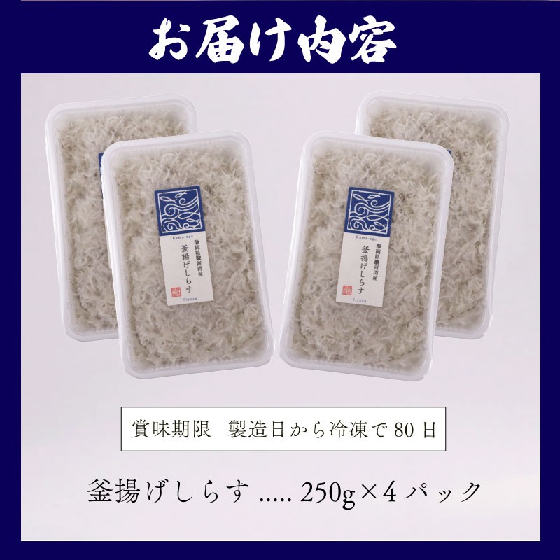 釜揚げしらす 250g 4パック 計 1000g 1kg 国産 しらす シラス 魚 魚介 新鮮 釜揚げ かまあげ 釜あげしらす 冷凍 冷凍しらす 小分け パック 冷凍食品 個包装 美味しい 送料無料 さかな お中元 お歳暮 ギフト プレゼント 贈答用 おすすめ お祝い 父の日 母の日 しらす丼 ご自宅用 家庭用 お手軽 ストック 新鮮 お手軽 簡単 贈り物 鮮度 静岡県 牧之原市 坂口産業株式会社