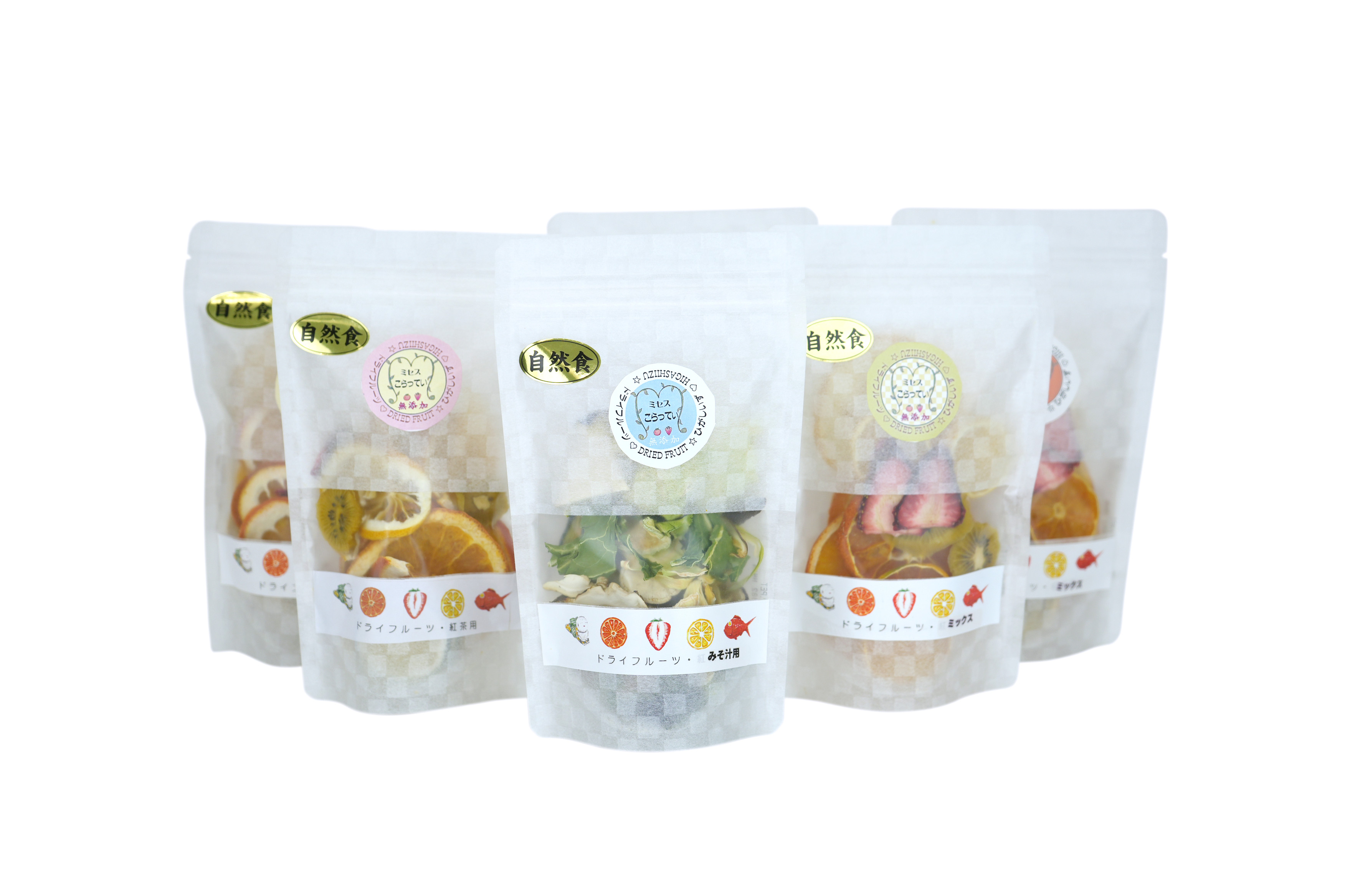 | 容量 | ドライフルーツ・ミックス(季節のみかん・いちご・キウイ)30g×2袋 紅茶用35g×2袋 ドライフルーツ・ベジタブル35g×2袋 季節によりフルーツや野菜の内容に多少の差異がございます |