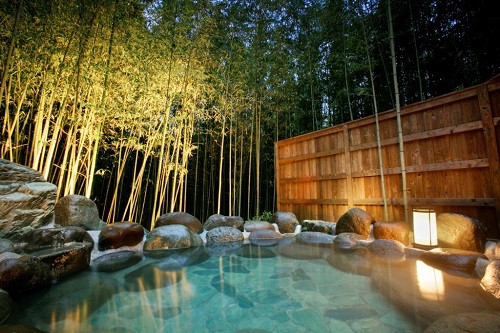 情緒あふれる竹林の小路や、貸切風呂が設置された竹林庭園
