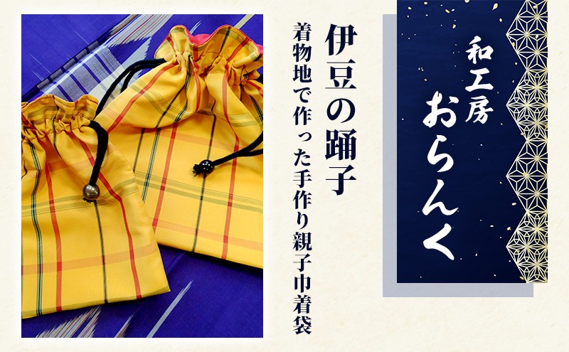 伊豆の踊子 着物地で作った手作り親子巾着袋 雑貨・日用品 [№…