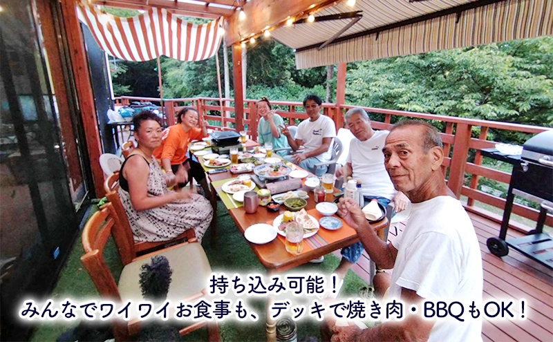 持ち込みも自由です。休憩室・ホールでお好きな食材とお飲み物でみんなでワイワイお食事をお楽しみください。(デッキでBBQ可)