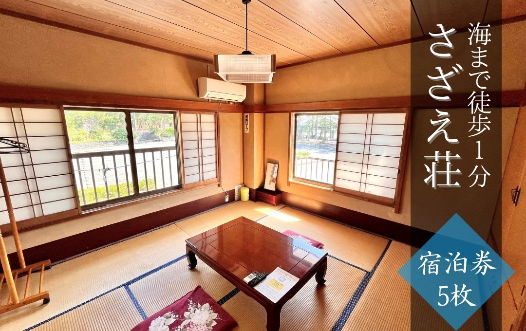 心ほどける弓ヶ浜時間。さざえ荘で、とっておきの休日を。 さざえ荘 宿泊券5枚 【 宿泊券 ペアチケット 温泉 旅館 旅行 トラベル 観光 静岡県 伊豆 南伊豆 南伊豆町 】 <AS-57>