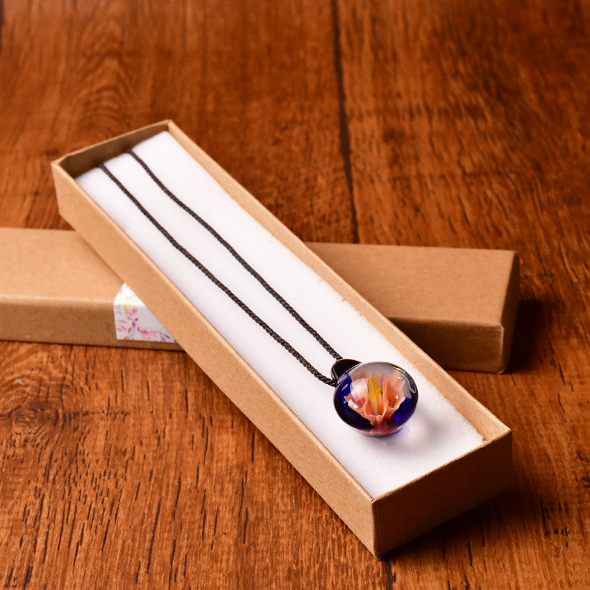 松崎町のガラス工芸作家が作る桜のペンダント。耐熱性のガラスで制作したペンダントになります。本物の桜を封入しているように思われますが、すべてガラスで制作されたペンダントになります。松崎町の春の風物詩である桜をモチーフにした、まさに「花とロマンの里」松崎町らしい作品になります。