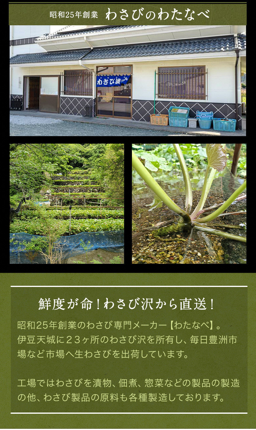 松崎のわさび専門メーカー『わさびのわたなべ』がお届けします。