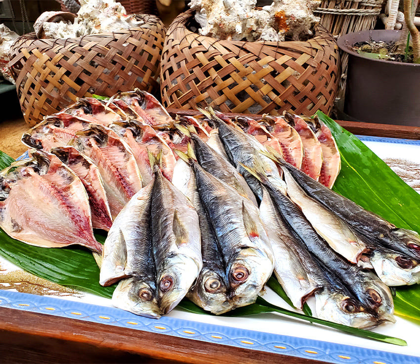 【提供時期】通年 伊豆近海産の鮮魚を厳選し、民芸茶房の職歴50年のベテラン職人が絶妙な塩加減で丁寧に仕上げます。 自家製で作り置きをせず、注文が入り次第仕上げます。 海の町松崎の干物をぜひおためしください。