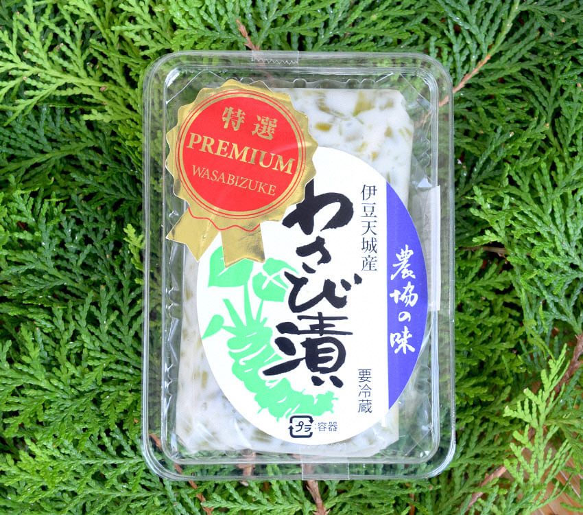 【提供時期】通年 伊豆松崎の豊かな山々と清流の中で、生産者がわさびを1本1本大切に育てています。また、その生わさびを使った特選わさび漬けは、最高の逸品でお酒のおつまみに最適です。