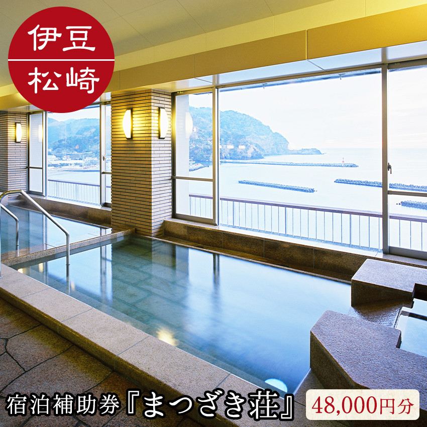 【提供時期】通年 松崎町営宿泊施設「伊豆まつざき荘」でご利用できる補助券となります。 伊豆松崎での最高のひとときを、大切な方と「伊豆まつざき荘」で過ごしてはいかがでしょうか。駿河湾を臨む最高の眺望。ゆったりと流れる伊豆松崎での時間をお楽しみください。 松崎町を代表するなまこ壁がデザインされた外観の「伊豆まつざき荘」。海側に面したお部屋からは、遮る物なく美しい伊豆西海岸を堪能することができます。 夕日が沈みゆく海とオレンジ色に染まる空の美しさは、きっと日常を忘れさせてくれることでしょう。 温泉からも海を眺めることができ、静かに時が流れてゆきます。夕日が沈んでも多くの星が輝き、自然を肌で感じることができます。 温泉でゆったりと癒されたあとは、豊富な海の幸に舌鼓をどうぞ。