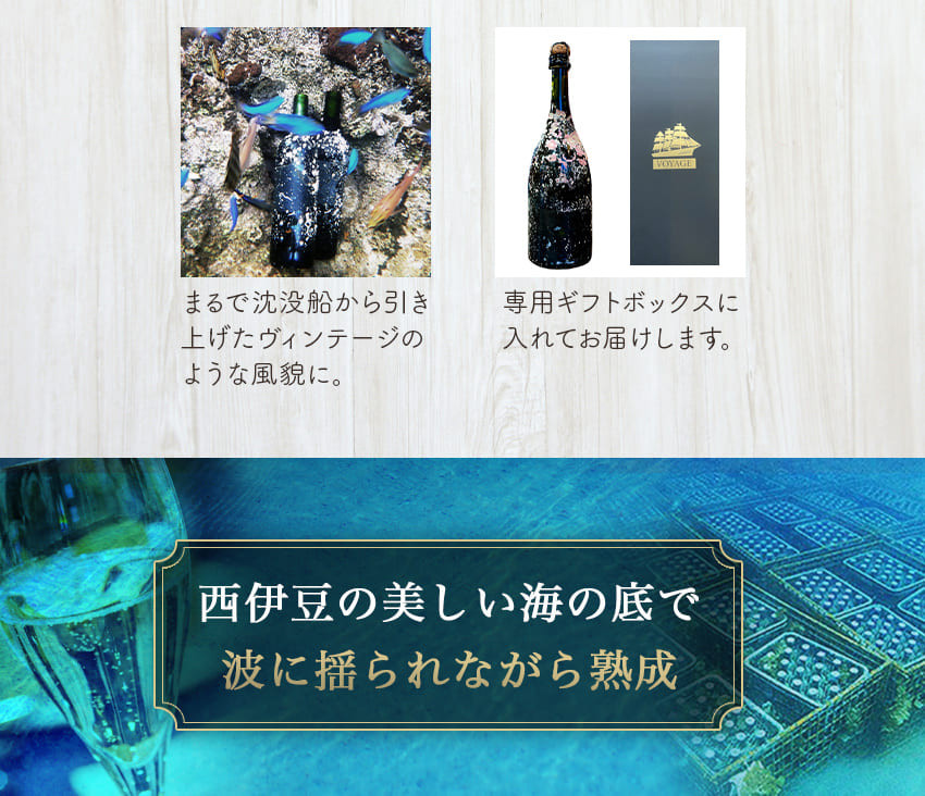 12月~5月下旬の約半年間、紫外線の届かない西伊豆の海底約15メートルの場所に沈め、 半年の間おおよそ15度~19度という一定の海水温の中で熟成させました。