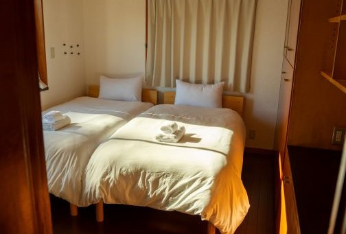 | 容量 | 精算時にご利用いただける宿泊補助券24,000円分(定員最大6名様まで) 素泊り ・洋室(ツイン) 2室、和室 1室 ・トイレ、浴室、キッチン、食器、電子レンジ、冷蔵庫、調理器具完備 |