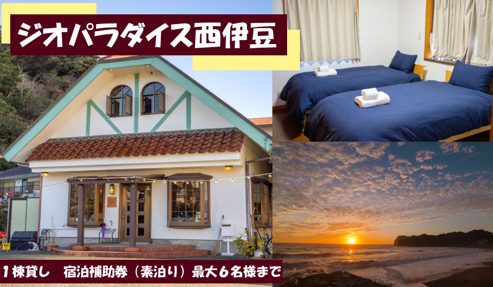 1組限定、一棟貸しの宿 ジオパラダイス西伊豆 一棟貸し(6名様まで)素泊り 宿泊補助券(24,000円分)
