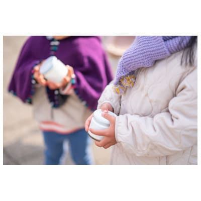 ●バターづくり体験 / 生クリームの入った瓶を10分間、リズムよく振り続けるとバターの出来上がり!