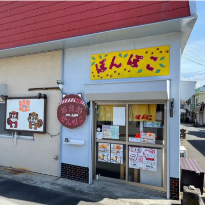 伊豆仁田駅から出てすぐ目の前、かわいらしいたぬきの看板が目印、ボリュームと優しさあふれる手作り料理が揃うお台処ぽんぽこ。