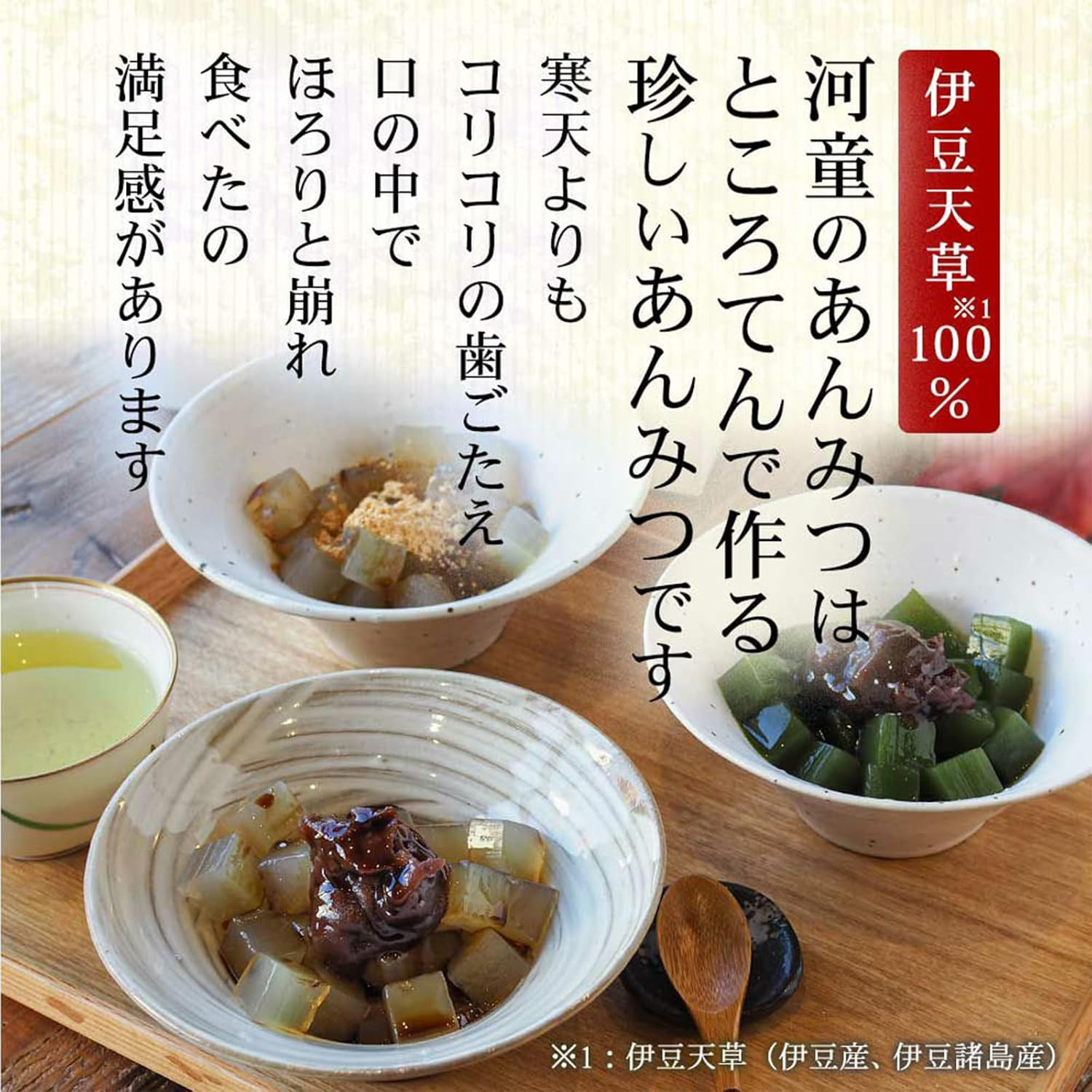 食感が違う!柿田川名水「ところてん」で作る、餡・蜜にもこだわったあんみつです。 和菓子 あんみつ ところてん (3種 6個 個包装 常温 黒蜜 きなこ 抹茶 あんこ 餡 伊豆 ギフト 伊豆河童 スイーツ 夏 涼菓)