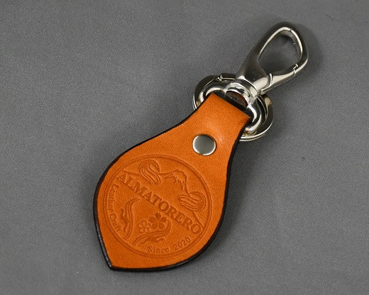 キャメルの牛革(栃木レザー)を使用しております。金具の色はシルバーを使用 1B27 ALMATOREROレザーキーホルダー シルバー