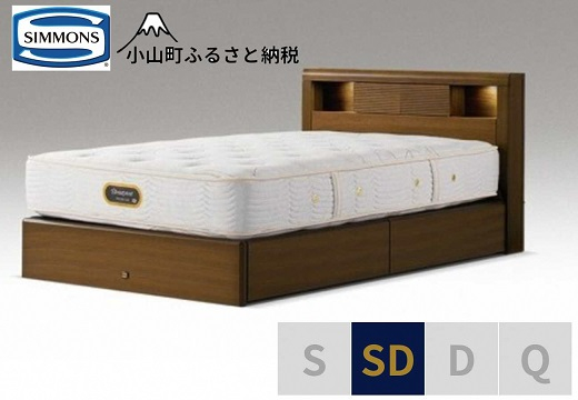 小山町に主力工場があるシモンズの協力により、待望の「シモンズベッド」が遂に登場! BK36【シモンズ】セミダブルベッド アーグシェルフ2引出付/6.5GVプレミアムAA21223 ウォールナット