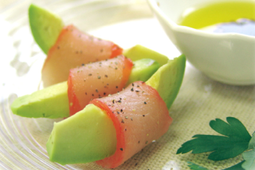 サラダやパスタ、カルパッチョ等、普段生ハムを使う料理にこちらのマグロの生ハムを使っていただくことで、いつもとはと少し違う食感、風味になります。