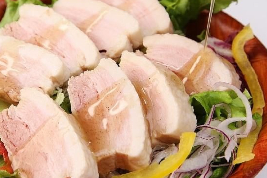 静岡県焼津港沖の『深い海の塩』とバランスの良い豚バラ肉で作る、シンプルだからこそ際立つ塩煮豚。余計な添加物を使わず、肉特有の嫌な香りを丁寧に取り除き、塩が甘みを引き立てる究極の逸品です。アレルギー体質やお子様にも安心して楽しんでいただける優しい味わい。ひと口ごとに幸せが広がる至福の一品をぜひご堪能ください。