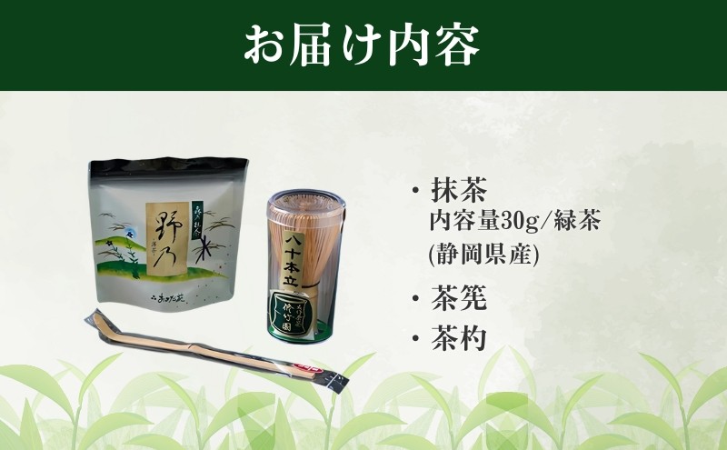 | 容量 | 抹茶:内容量30g/緑茶(静岡県産) 茶筅:中国製 茶杓:国産 |