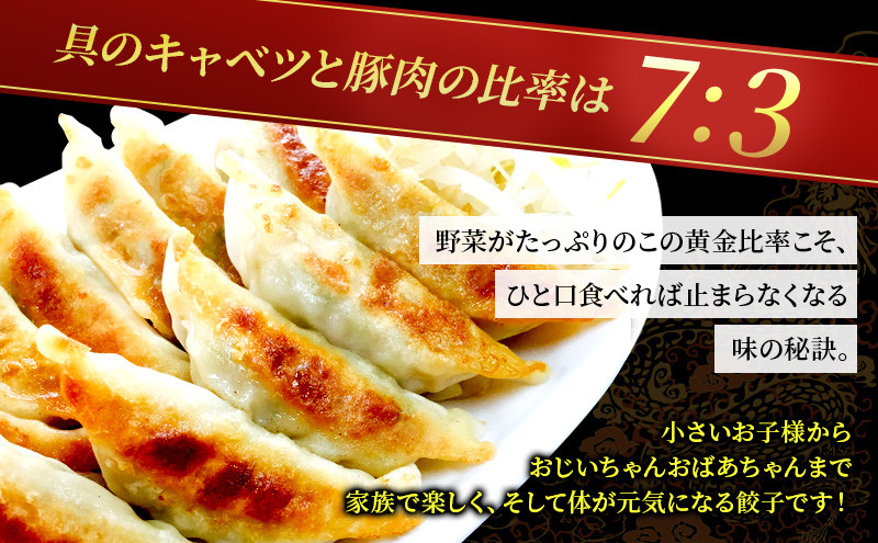 当店の餃子の具は70%がキャベツです。餃子は野菜をおいしく食べることの出来る食べ物です。焼いてもおいしい、揚げてもおいしい、更に野菜と冷凍のままの餃子を一緒に5~6分蒸すことによって、ヘルシーでホッとする味わいになります。