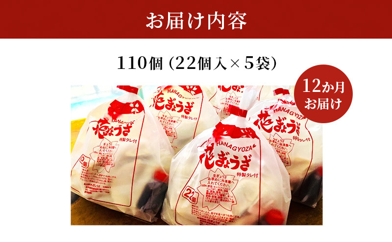 餃子 定期便 12ヶ月 冷凍 花ぎょうざ 110個(22個入×5袋) 冷凍餃子 焼き餃子 冷凍食品 おかず 惣菜 国産 中華 中華料理 点心 ご当地 ご当地グルメ ぎょうざ ギョーザ 冷凍配送 静岡 静岡県 森町 定期 12回