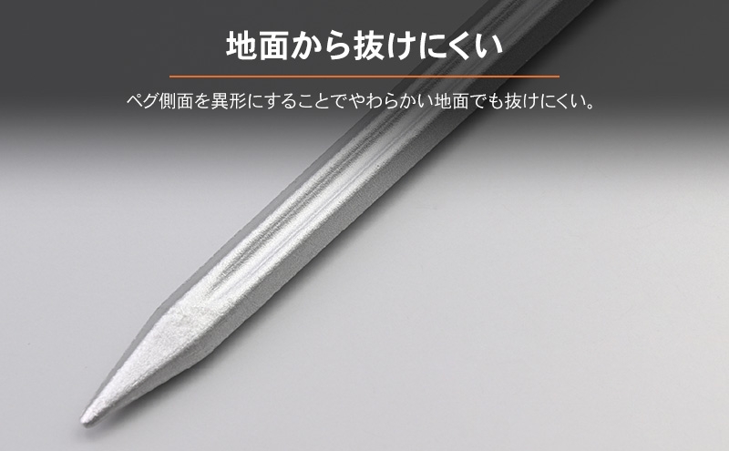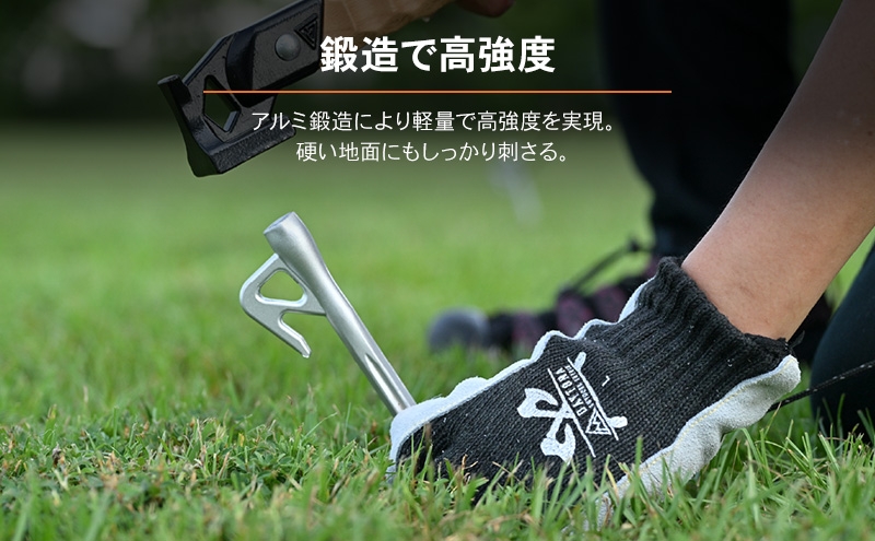 高い強度を誇る「鍛造製法」を採用することで、硬い地面にもしっかりと打ち込めるタフさを実現しました。