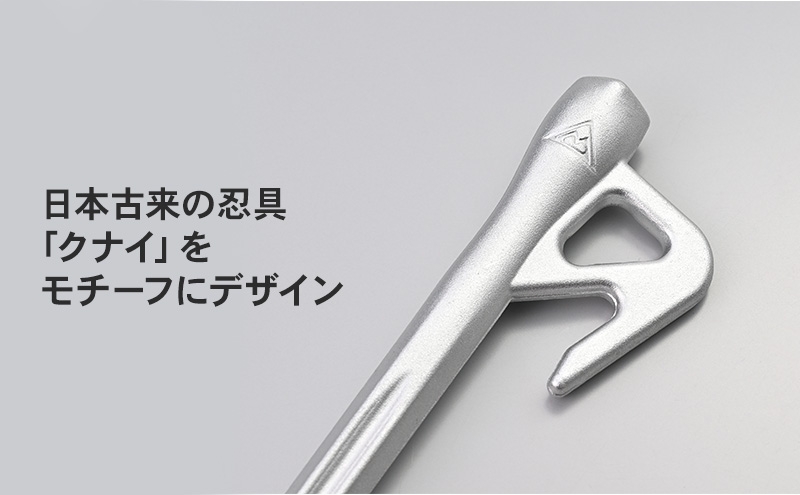 現在、キャンプ用品を広く展開しているデイトナが、日本古来の忍具「クナイ」をモチーフにデザインしたのが、このアルミ鍛造ペグです。