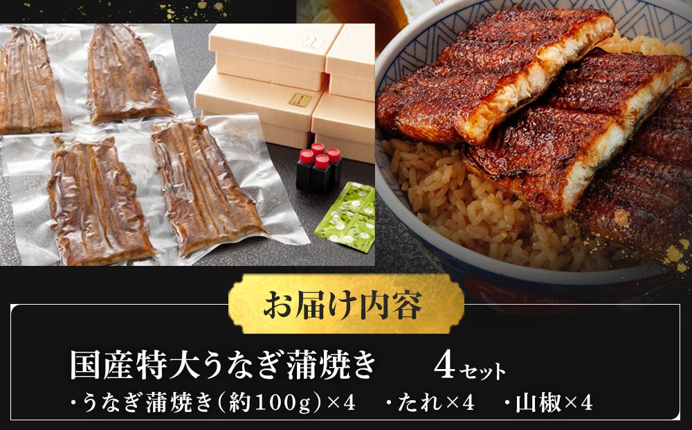 良質の環境で育ったうなぎの中でも、その時期に応じて一番脂の乗ったものを厳選 国産特大うなぎ蒲焼き(うな丼用4セット)