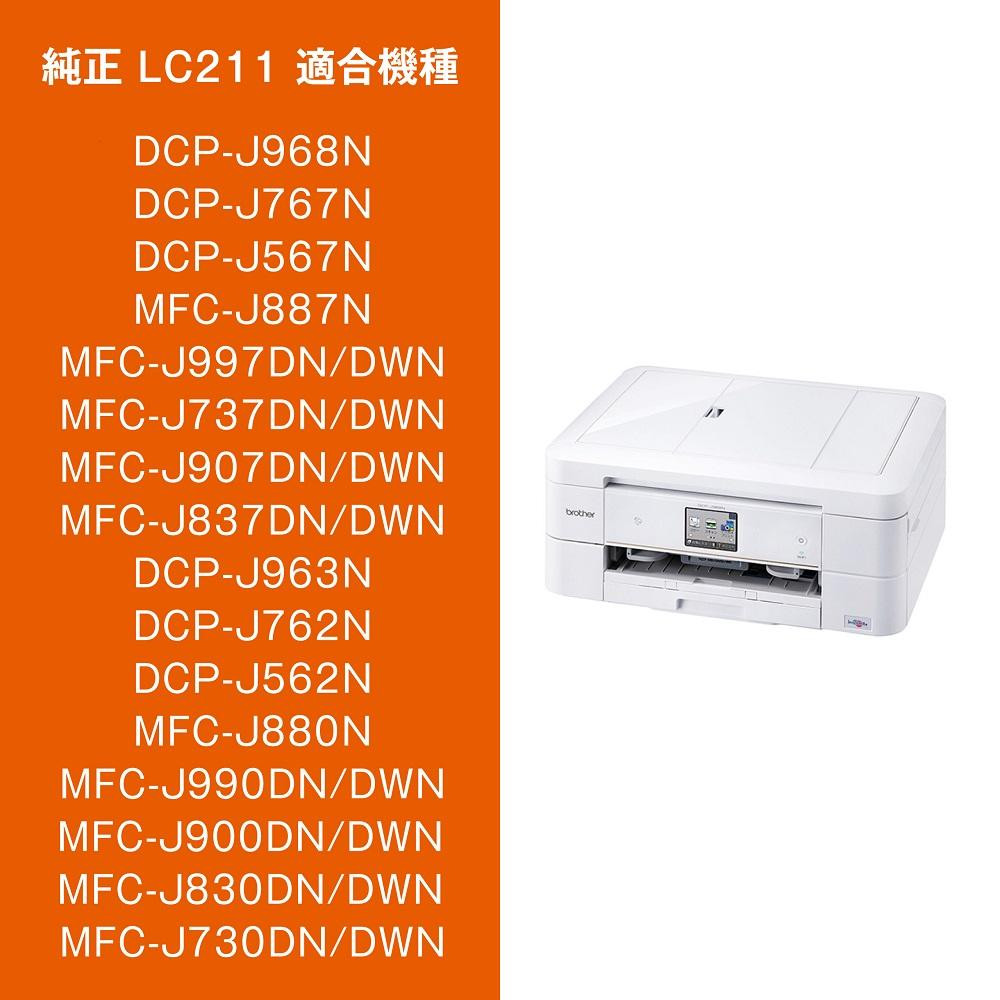 | 容量 | LC211BK(ブラック):1 LC211C(シアン):1 LC211M(マゼンタ):1 LC211Y(イエロー):1 ブラック:顔料 シアン:染料 マゼンタ:染料 イエロー:染料 |