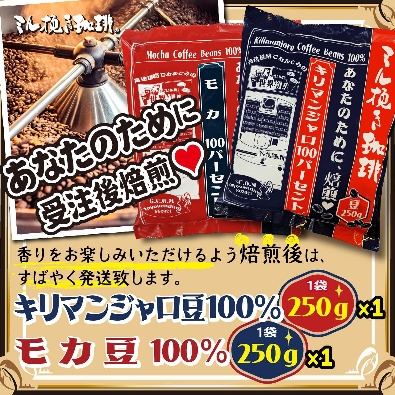 名古屋市 特撰・特産 ミル挽き珈琲 モカ豆100% 1袋・キリマンジャロ豆100% 1袋セット (250g/袋)