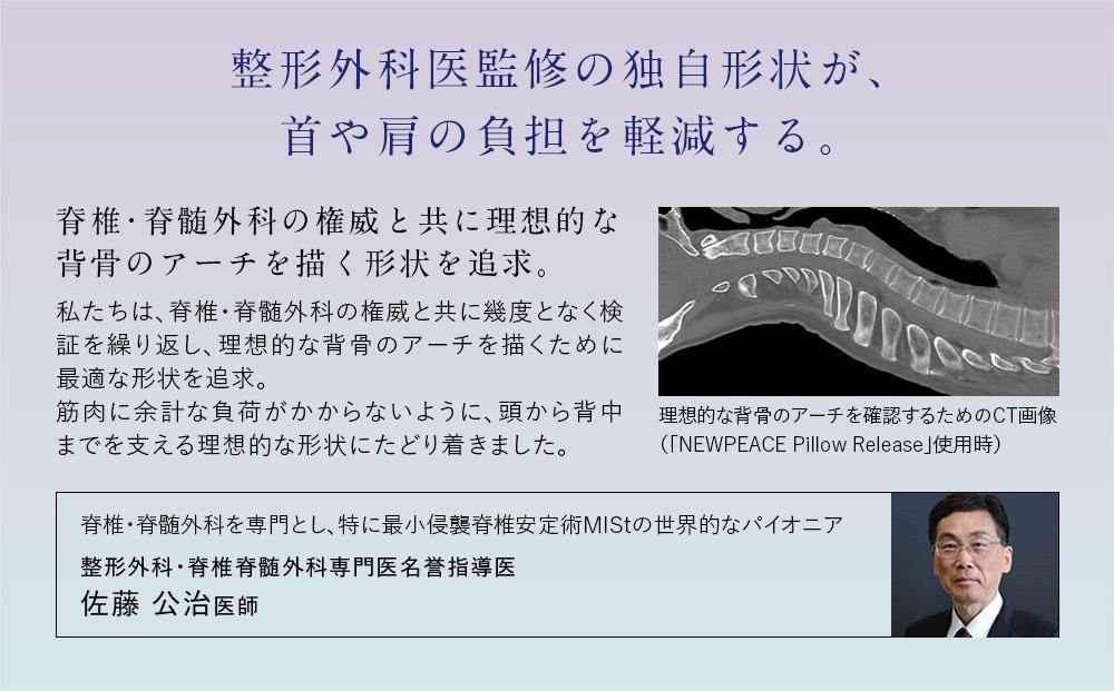 ■NEWPEACE Pillow Release 新素材と独自の形状で今までにない寝心地を実現しました。