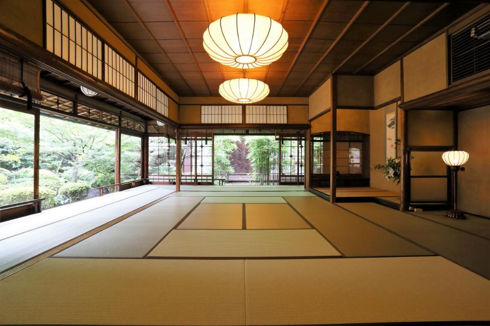 お座敷から望む庭園の木々と草花、苔が織りなす四季折々の景色と、