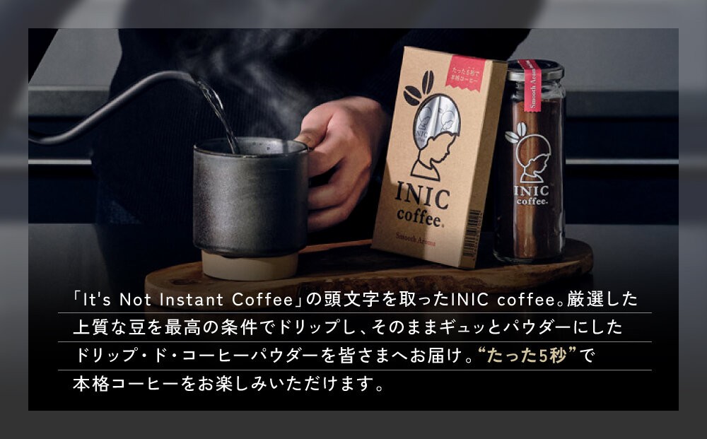 もし、お湯で溶かすだけで淹れたてのドリップコーヒーと同じ味わいを楽しめるとしたら…。それができるのがイニックコーヒーです。