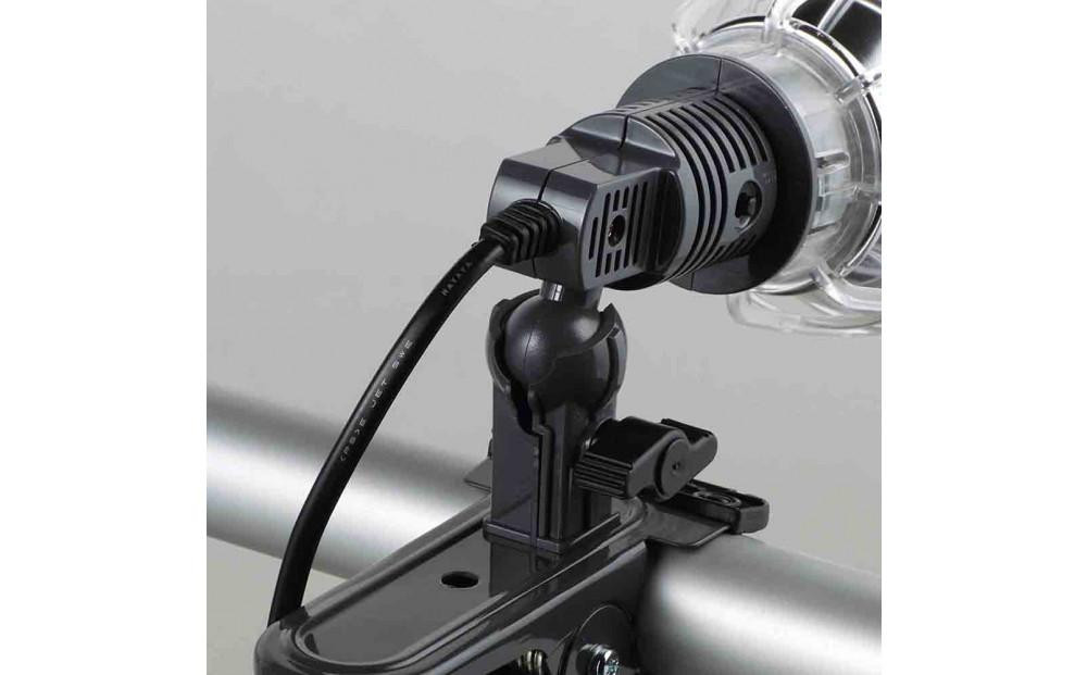 明るく(LED7.3W)、軽量(0.9kg)で本体は360°回転し、ボールジョイントで前後120°調節が自由にできる。